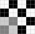 Тканина, в якій нитки основи й утоку утворюють досить великі квадрати, розташовані в шаховому порядку[1].