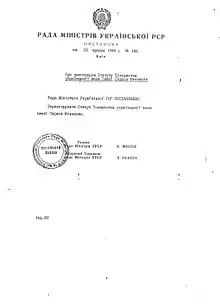 - Статут ТУМ ім. Т. Шевченка // Літ. Україна, 1989, 2 березня; Яременко В. Т
