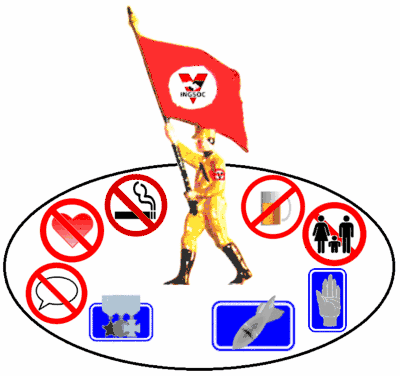 Трохи пізніше Старший Брат у своєму відеозверненні до народу Океанії додав кілька ремарок до портрета Товариша Огілві: про бездоганність його життя і ту цілеспрямованість, з якою він полював на ворожих шпигунів, диверсантів, думкозлочинців і зрадників, — адже їх пошук і винищення, як і знищення ворожої держави Євразії, були єдиною метою його героїчного життя. Єдиним предметом розмови для нього були принципи ангсоцу. Єдиною розвагою для нього була година, яку він щодня проводив у спортзалі, оскільки ще в юності Огілві відмовився від куріння і алкоголю. Він прийняв обітницю безшлюбності, оскільки був переконаний, що шлюб і сімейні турботи несумісні з відданістю службі двадцять чотири години на добу, сім днів на тиждень.