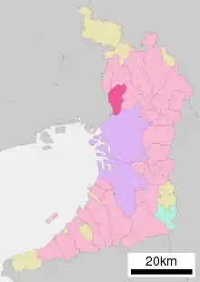 - Хіґашіде М. Історія міст префектури Осака. Адміністративний поділ Японії. (японською). Архів оригіналу за 25 червня 2013. Процитовано 20 вересня 2012.