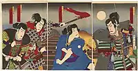 Kabuki scene depicting a samurai of the Sanada carrying a cannon
