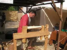 На українських територіях наприкінці XIX — початку XX століття ремісники використовували токарний верстат, що називався «токарня». Складався він з дерев'яної основи (підстави), в якій укріплялися дві вертикальні стійки (стовпи), що з'єднувалися у верхній частині перекладкою (огнивом). В огниві був поздовжній виріз, у якому переміщався вертикальний брусок (заяць), що грав роль сучасної задньої бабки. Від зайця до лівого від токаря стовпа йшов горизонтальний стрижень (валок), який виконував роль шпинделя: між одним кінцем його і зайцем поміщався обточуваний шматок дерева. На валок петлею був намотаний ремінь, що приводив його в рух: нижній кінець цього ременя кріпився до педалі, верхній — до окремо встановленої жердини (жердки). У лівий від токаря стовп була вдовбана товста дощечка (решітце́), від якої до зайця йшла деталь з викривленого деревного сучка (кривуля), на яку спиралася ліва рука майстра. Педаль кріпилася до підстави і складалася з упора для ноги (він звався постіл), вробленого у вісь (воротило), яка кінцями входила у два бруски (жабки). Сидіння токарні називалося сіде́ць[7].