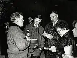 ![]() Олександр Токар (з мікрофоном) під час інтерв'ю | |