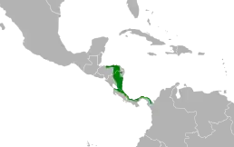 Вид поширений в Центральній Америці. Трапляється в Гондурасі, Нікарагуа, Коста-Риці та Панамі. Мешкає у тропічних і субтропічних вологих лісах.