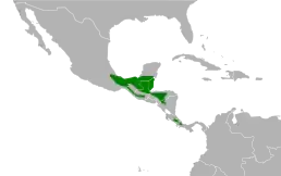Вид поширений в Центральній Америці. Трапляється від півдня Мексики до західної частини Панами. Природним середовищем існування є гірський тропічний або вологий субтропічний ліс та бамбукові ліси на висотах понад 1000 м над рівнем моря.