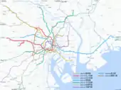 | багряна | Лінія 12 | Лінія Оедо | 大江戸線} | ||||||