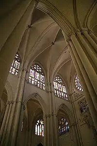 У вівтарній частині є подвійний деамбулаторій, який було таким зроблено, щоб відповідати поземному плану п'яти нав і продовжувати їх. Каплиці довкола деамбулаторію у плані чергуються між більшими квадратними та меншими трикутними. Цей метод поділу вівтарної частини зустрічається у французьких соборах Парижу, Бурже та Ле-Ман. Останній на вигляд найбільш схожий, хоча всі три більш стрункі на вигляд. Різноманітні перебудови змінили вигляд деяких каплиць, наприклад три каплиці були замінені однією.