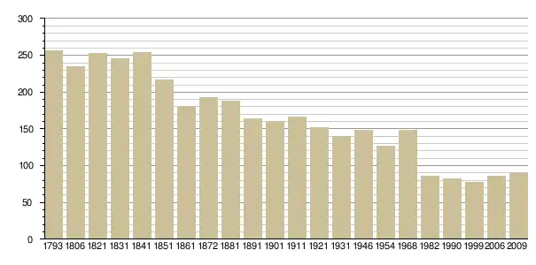 Динаміка населення (base Cassini de l'EHESS pour les nombres retenus jusque 1962[3], base Insee à partir de 1968 (population sans doubles comptes puis population municipale à partir de 2006)[4] · [5] ):