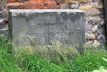 Томас Гендерсон помер у будинку № 1 по вулиці Гіллсайд Кресцент (англ. Hillside Crescent)[5] в Единбурзі 23 листопада 1844 року і похований на цвинтарі Грейфраєрс. Його могила може бути або в могилі Александера Аді[6], або в могилі, позначеній кам'яною плитою «на його пам'ять»[7]. Ім'я Гендерсона не значиться на могилі Аді; сам Александер Аді помер через 14 років після Гендерсона.