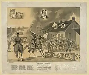 4 вересня 1862 р. 55-тисячна Північновірджинська армія вступила в Меріленд. Через кілька днів, коли бригади Джексона проходили Фредерік, юніоністка Барбара Фрітчі стала розмахувати прапором США з вікна свого будинку. Проїжджавший повз Джексон заборонив солдатам чіпати жінку. На основі цих подій поет Джон Уіттьєр у 1864 році написав поему «Барбара Фрітчі». Деякі дослідники вважають цю історію міфом[65]. Джон Мосбі згодом писав: "Я їхав позаду Джексона, коли у вересні 1862 р. він рухався на чолі своєї колони через Фредерік, під звуки оркестру, що грає 'My Maryland'. Але я ніколи не чув історії про Барбару Фрітчі, доки не прочитав поему Уіттьєра "[45].