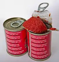 Томатна паста (томат-паста) — продукт, який готується зі стиглих помідорів (томатів) шляхом протирання і уварювання їх до концентрованої маси, з вмістом сухих речовин від 25 до 40%. Томат-паста (несолона) виробляється вищого та 1-го ґатунків і випускається в жерстяних або скляних банках різної ємності. У бочках випускається томат-паста солона; кількість солі за стандартом повинно бути не більше 10%. Томат-паста солона містить від 27 до 37% сухих речовин. Колір томат-пасти вищого ґатунку повинен бути оранжево-червоним. Для 1-го ґатунку допускається коричневий відтінок.