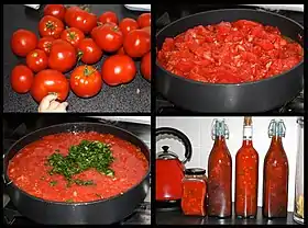 Томатний соус готують безпосередньо перед вживанням або заготовляють про запас. У другому випадку томати зазвичай піддають тривалішій кулінарній обробці, потім готовий соус закривають у стерилізовані банки[3]. Томатний соус також використовується для консервування овочів, м'ясних продуктів, риби (наприклад, в СРСР бички в томатному соусі належали до наймасовіших видів рибних консервів)[4].