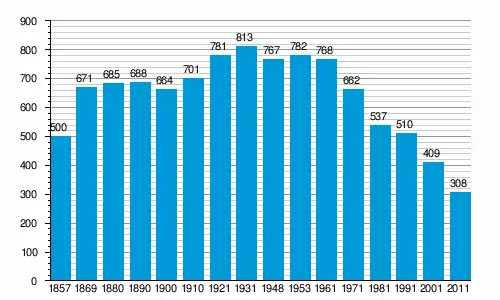 Населення громади за даними перепису 2011 року становило 1 565 осіб[1], 6 з яких назвали рідною українську мову[3]. Населення самого поселення становило 308 осіб.[1]