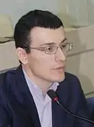 ![]() Сергій Томіленко під час презентації книги Валерія Макеєва «100 днів полону, або позивний «911» у Тернополі (2.03.2016) | |