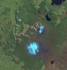Ерозія та відкладення гірських льодовиків також відігравали важливу роль у створенні форми вулканів Тонгаріро і Руапеху. Сьогодні на вершині гори Руапеху існують невеликі льодовики, однак є численні геоморфологічні докази великого зледеніння в недавньому геологічному минулому. На Тонгаріро востаннє льодовики існували під час останнього льодовикового максимуму.[8]