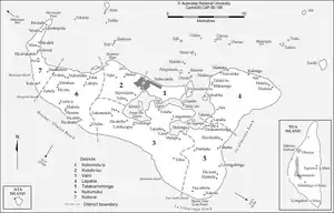 - 3. Район Ваїні (адміністративний центр — Ваїні), займає центральну частину південного узбережжя острова Тонгатапу, з загальною кількістю населення 12 949 осіб (2011), яке проживає в дев'ятьох населених пунктах (селах): Ваїні, Веїтонго, Лонготеме, Малапо, Нукухетулу, Пеа, Токомололо, Фолаха, Ха'атеїхо.