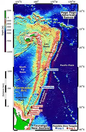 - Garcia-Castellanos, D., M. Torné & M. Fernàndez (2000). Slab pull effects from a flexural analysis of the Tonga and Kermadec Trenches (Pacific Plate). Geophys. J. Int. 141: 479–485. Bibcode:2000GeoJI.141..479G. doi:10.1046/j.1365-246x.2000.00096.x. Архів оригіналу за 11 квітня 2013. Процитовано 2 серпня 2014.