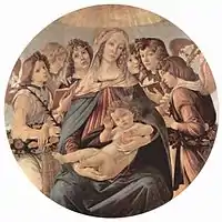 Гранатна Мадонна, Сандро Ботічеллі, Уффіці, бл. 1487, темпера на деревині, діаметр 143,5 см