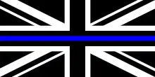 Наразі для підтримки поліції в США та Британії використовуються чорно-білі прапори цих країн з горизонтальною синьою лінією.