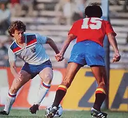 | Вудкок (ліворуч) проти Антоніо Ольмо на Євро-1980. | ||||||||||||||||||||||||||||||||||