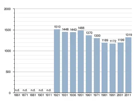 Станом на 31 грудня 2014 року в муніципалітеті офіційно проживало 75 іноземців з 16 країн, серед них 41 громадянин країн Євросоюзу та 5 громадян України.[4]