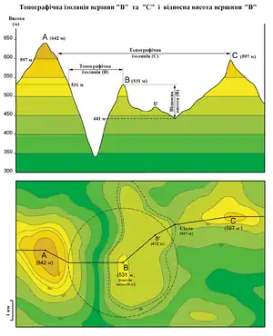 Топографічна ізоляція може бути розрахована для невеликих пагорбів, островів, а також для великих гірських піків. Топографічна ізоляція може навіть бути розрахована для підводних вершин.