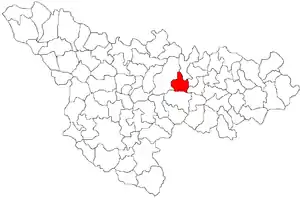 Комуна розташована на відстані[3] 381 км на північний захід від Бухареста, 30 км на схід від Тімішоари.