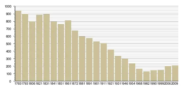 Динаміка населення (Baratier, Duby & Hildesheimer pour l’Ancien Régime ; Insee[3], EHESS[4] pour les chiffres issus des recensements légaux ):