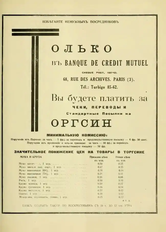 Для виправлення недоліків у роботі мережі Торгзінів за 1933 рік, на засіданні правління від 17 січня 1934 року було вирішено організувати у складі Всеукраїнської контори спеціальний підрозділ по роботі з переказами, який був звільнений від усієї іншої роботи.[3]