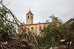 ![]() Село Грушки з церквою Святого Варфоломія наступного дня після смерчу | |