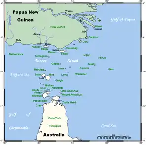 Торресова протока — між островом Нова Гвінея та австралійським півостровом Кейп-Йорк; Протока сполучає Коралове море на сході з Арафурським морем на заході.