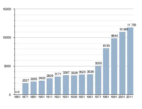 Станом на 31 грудня 2014 року в муніципалітеті офіційно проживало 1095 іноземців з 55 країн, серед них 268 громадян країн Євросоюзу та 22 громадяни України.[4]
