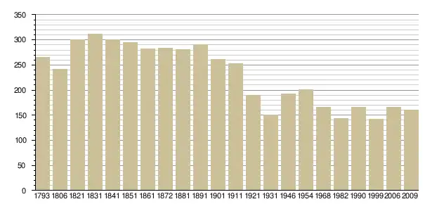 Динаміка населення (base Cassini de l'EHESS pour les nombres retenus jusque 1962[3], base Insee à partir de 1968 (population sans doubles comptes puis population municipale à partir de 2006)[4] · [5] ):