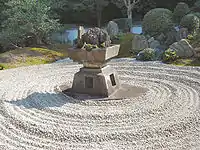 - Південний сад складається з 4 груп каменів і валунів, розташованих на майданчику, посипаному гравієм. У крайньому правому куті західного боку розташовані п'ять покритих мохом «гір» і одиничний бонсай у правильному прямостоячому стилі.