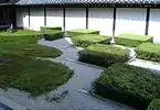 - Північний сад являє собою майданчик, на якому в шаховому порядку розташовані невеликі квадрати з моху і каменю. По краях майданчика розташовані невисокі підстрижені кущі.