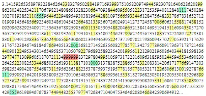 Число пі до точки Фейнмана (включно)[6]: