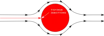 У гідроаеродинаміці точка застою — це точка поля потоку, де швидкість потоку нульова.[1] Точки застою на поверхні об'єктів у полі потоку - це ті точки, де потік зупиняється об'єктом. Рівняння Бернуллі показує, що статичний тиск найвищий, коли швидкість нульова і відповідно статичний тиск максимальний в точках застою. Такий тиск називається тиском гальмування.[2][1]