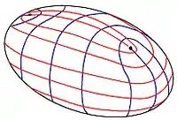 - Триосний еліпсоїд (з попарно різними осями) має чотири точки округлення, всі вони еліптичні і відносяться до типу «лимон».