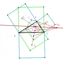 - Точки Наполеона — пара центрів трикутника, побудованих аналогічним способом з використанням замість квадратів рівносторонніх трикутників