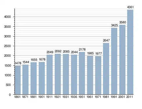 Станом на 31 грудня 2014 року в муніципалітеті офіційно проживало 196 іноземців з 38 країн, серед них 88 громадян країн Євросоюзу та 28 громадян України.[4]