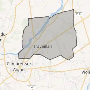 - Розташування муніципалітету Траваян на мапі Франції та сусідні муніципалітети