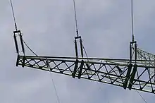 Траверсою також називається поперечна балка для кріплення ізоляторів у верхній частині опори лінії електропередач або стовпа телеграфної лінії (Див. фото 2).