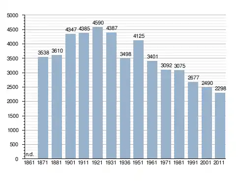 Станом на 31 грудня 2014 року в муніципалітеті офіційно проживали 74 іноземці з 19 країн, серед них 29 громадян країн Євросоюзу та 4 громадяни України.[4]