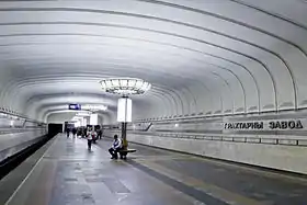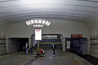 В основі конструкції - склепіння. Провідна тема декору - торшери, розташовані по центру платформи з певним ритмом. Оригінальна форма торшерів багатофункціональна. Це і освітлення станції, і місця для відпочинку пасажирів, візуальна інформація і розміщення динаміків радіотрансляції.