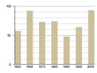 | Жінки | 46 | 5 | 9 | 14 | 11 | 6 | 1 | ||||||||||||||||||||||||||||||||||||||||||||||||||||||||||||