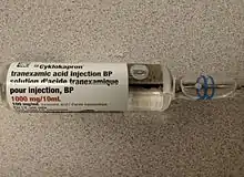 Транексамова кислота (Tranexamic acid, ТХА) — це антифібринолітичний препарат[3], який використовується для лікування або запобігання надмірної крововтрати від серйозних травм, післяпологових кровотеч, хірургічного втручання, видалення зубів, носової кровотечі та рясних менструацій.[3][4] Він також використовується при спадковому набряку Квінке.[5] Його приймають або орально, або ін'єкційно у вену.[6]