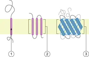 - α-спіральні — найбільша група, представники якої присутні у всіх типах біологічних мембран.