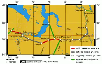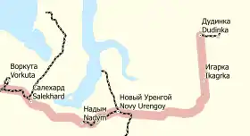 Перебудована ділянка залізниці між Новим Уренгоєм та Надимом знаходиться в експлуатації, також як ділянка від Лабитнанги з'єднана з материковою залізницею через Воркуту. Лінію від Салехарду до Надиму є плани добудувати[5] в тому числі будівництво нового мосту через Об в Салехарді для з'єднання з материковою частиною російської залізниці через Лабитнангі[6]