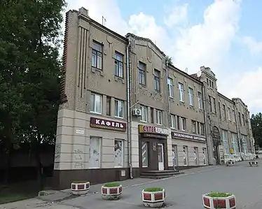 ![]() Вид з Транспортної площі на колишній Великий Московський отель (на перетині просп. Соборного та вул. Святого Миколая, 1) Вид з Транспортної площі на колишній Великий Московський отель (на перетині просп. Соборного та вул. Святого Миколая, 1) | |