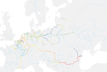 Порт Роттердама у Нідерландах є найбільшим портом у Європі і одним з найбільш зайнятих портів у світі, що обробляв близько 440 млн тонн вантажів у 2013 році.[9] Якщо з'єднати його з промисловою зоною Європорт, то Роттердам за певними вимірами може бути назавантаженішим портом світу. Дві третини судноплавства внутрішніх водних перевезень у межах ЄС та 40 % контейнерів проходять через Нідерланди.[10] Інші великі порти — це Порт Гамбурга в Німеччині і Порт Антверпена у Бельгії. Всі вони є частиною так званого «Північного діапазону».